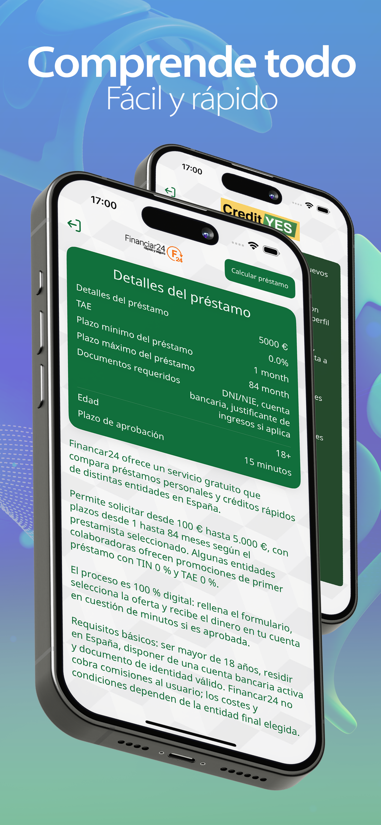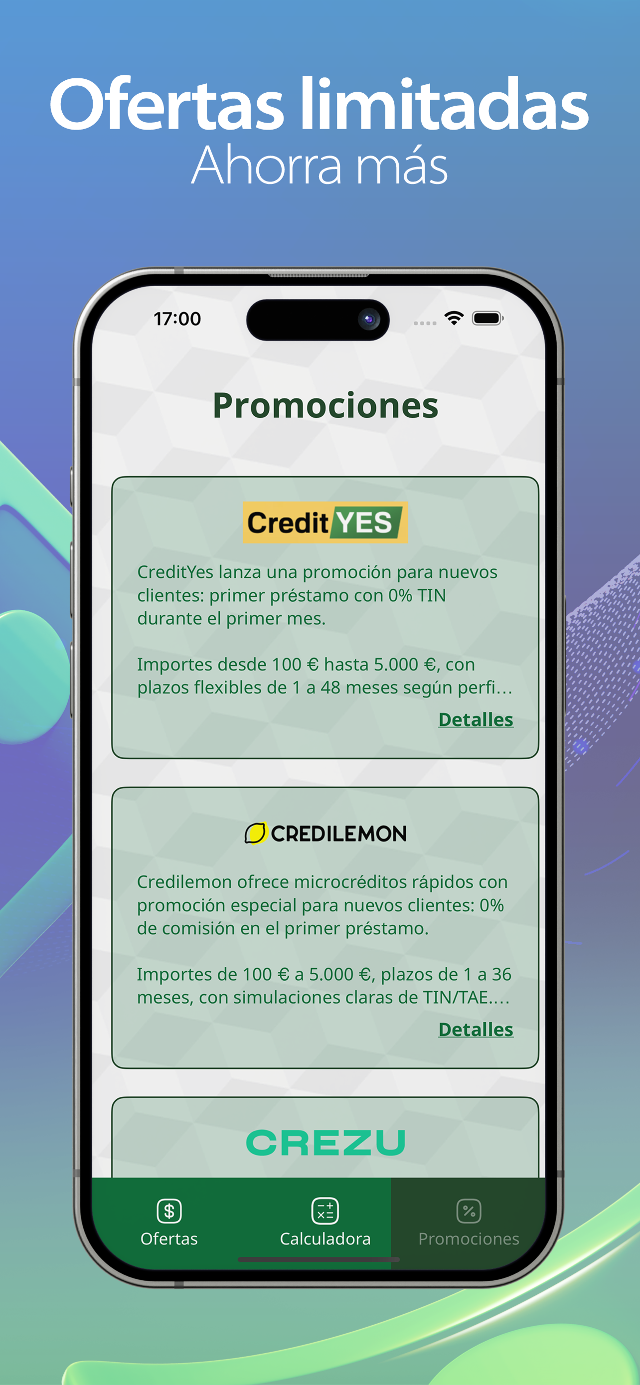Ten en cuenta que no otorgamos préstamos directamente. Esta aplicación es una herramienta independiente diseñada para ayudarte a comparar y seleccionar ofertas de manera transparente y responsable.